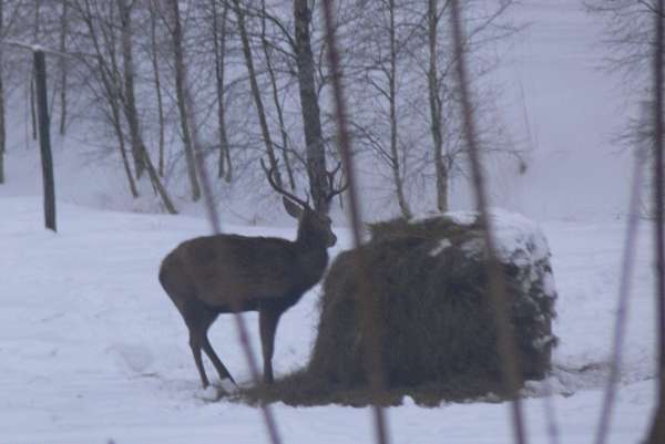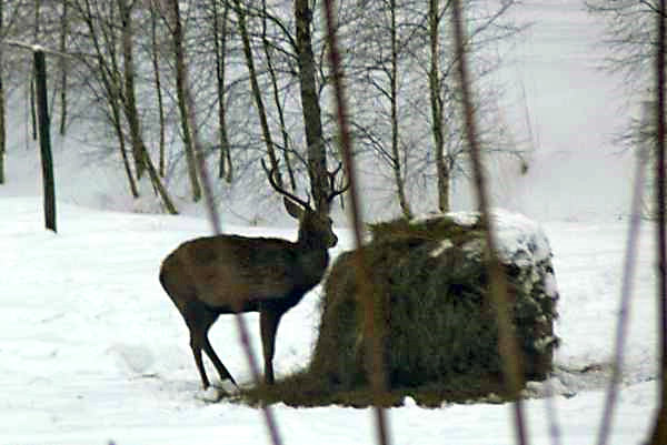 Mój sąsiad podesłał mi zdjęcie, które zrobił przedwczoraj, kiedy do wyłożonego prze niego świeżego siana bardzo blisko podszedł okazały rogaś – nie zważając na bliskość zabudowań. Zwierzyny płowej raczej nie spotkamy w ciągu dnia. Wychodzi dopiero pod wieczór – prawie o zmroku i tuż przed świtem.